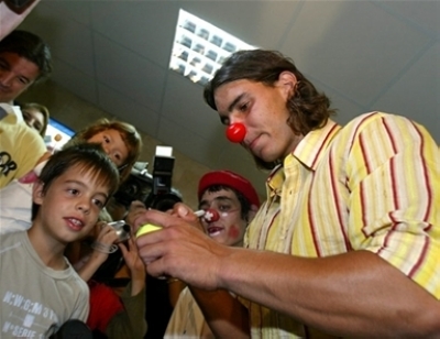 一向熱心公益的納達(dá)爾,很喜歡與孩子們玩樂。四年前,納達(dá)爾就在馬洛卡杜雷塔醫(yī)院扮作小丑安慰受到病痛折磨的孩子們。西班牙RTVE電視臺稱,這是孩子們令人難忘的經(jīng)歷,“從他們驚訝的面部表情當(dāng)中就可以看出,對于世界第一的網(wǎng)球選手能親自來給他們講童話,是多么難以置信!逼鋵,一向喜歡看動畫、玩PS2游戲的納達(dá)爾在場外就是個長不大的孩子。這個漫畫《七龍珠》的忠實擁躉,出外比賽旅行時也總帶著《七龍珠》的DVD,所以講起童話來也頭頭是道!捌鋵嵨也淮髸瑁喾礊楹⒆觽儗⒐适率羌诲e的工作。”納達(dá)爾坦言。