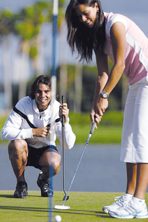 早在之前的匯豐冠軍賽上,納達(dá)爾就曾經(jīng)為老虎伍茲捧場(chǎng),而他自己也是位“敬業(yè)的高爾夫粉絲”,同時(shí)也是老虎伍茲的崇拜者。網(wǎng)壇美女伊萬諾維奇更是不用說,最近剛剛和高爾夫萬人迷斯科特爆出緋聞,和斯科特在海灘的清涼照片更是被多家媒體刊登,F(xiàn)在伊萬諾維奇為了和斯科特有更多的話題也拿起了球桿開始學(xué)習(xí)高爾夫。