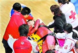 綜合《京華時(shí)報(bào)》、《今日早報(bào)》等報(bào)道,4日的全運(yùn)會(huì)短道速滑賽場(chǎng)上出現(xiàn)了驚險(xiǎn)一幕;在女子500米預(yù)賽中,新疆小將孔雪的脖子被冰刀劃傷,出現(xiàn)了一道6厘米長(zhǎng)的傷口,一時(shí)血如泉涌?籽╇S后被送往醫(yī)院縫合了14針。昨日,孔雪帶傷上陣,現(xiàn)場(chǎng)掌聲、加油聲此起彼伏。