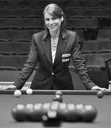 做斯諾克裁判前,塔布自己也是一位九球高手。高到什么程度呢?至少不會比中國的美女球手潘曉婷遜色。塔布曾以蘇格蘭九球隊隊長身份率隊奪得世錦賽冠軍。不過做裁判和自己打球是兩回事,尤其在與九球截然不同的斯諾克界,幾乎沒有出現(xiàn)過女性身影。要看清復雜的球路變化,記得障礙球前全盤的位置,觀察球員是否有細微的犯規(guī)行為,對斯諾克裁判來說,都不是一件容易的事。