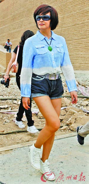 在將近三個小時的參觀過程中,劉曉慶也成為了乾陵一道風景線。當劉曉慶一身熱辣的運動裝出現(xiàn)在大家面前時,不少人都驚呼,“還是一副少女的感覺。”她的運動裝配以黑色超短裙,半截黑絲襪做點綴,還是顯出了比較清純的氣息。對此,劉曉慶回答道:“我風格比較多,愛好也比較多,今天因為要走很多路,所以是這樣的裝扮。不知道今天會有媒體到場,不然我一定要好好打扮一番,不要素顏。”