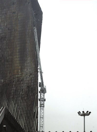 “央視過(guò)火樓”將于今日啟動(dòng)復(fù)建工程的第一階段,即拆卸施工階段。記者從該工程總承包單位———北京城建集團(tuán)了解到,今日啟動(dòng)的是金屬幕墻和網(wǎng)架的拆卸。