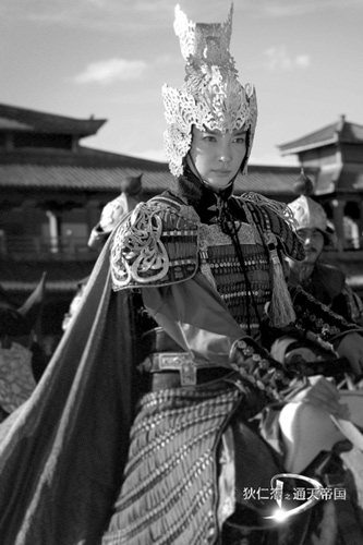 繼劉德華、劉嘉玲的造型被曝光后,李冰冰在《狄仁杰》中的兩組劇照曝光,飾演上官靜兒的李冰冰分別以將軍、宮女造型亮相,男裝威武,女裝嬌媚。影片造型指導(dǎo)余家安透露,李冰冰的造型是五個(gè)主要角色中最多的一位,單是她的男裝造型就有13款之多,而女裝卻僅有一款,對(duì)此李冰冰笑言:“我這次把一輩子的男裝全穿完了”。 記者馬丹