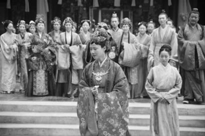 新版《紅樓夢(mèng)》中還有一個(gè)大場(chǎng)面——“可卿喪禮”,規(guī)格絲毫不次于“元妃省親”的花費(fèi),單是停靈就用了49天,“寧國(guó)府街上一條白漫漫人來人往,花簇簇官去官來”,加上數(shù)十位僧道日夜超度,薛蟠送來的、無人敢擅用的檣木棺,還有瑞珠殉葬,秦可卿的喪禮一時(shí)間有了親王級(jí)別的排場(chǎng),引得賈政等人連連搖頭。而這場(chǎng)戲拍攝得也極為仔細(xì),為符合原著基本精神,遵照當(dāng)時(shí)的禮儀規(guī)矩,賈府一應(yīng)女眷均處在一個(gè)白幃子里。