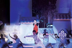 在眾人的歡呼聲中,趙薇開(kāi)腔演唱了新專輯中的歌曲《江城子》。舞臺(tái)上是連綿的徽派建筑布景,在白衣舞者的簇?fù)硐,舞臺(tái)上的趙薇仿佛與故鄉(xiāng)的景物融為一體。