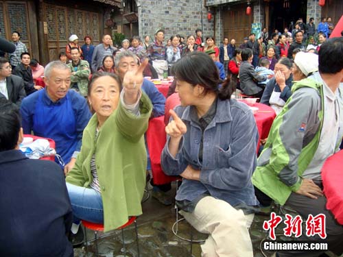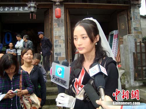 中新網汶川9月28日電(鄢銀嬋)28日中午,四川省汶川縣水磨鎮(zhèn)的萬年臺戲臺廣場上正舉辦一場熱熱鬧鬧的婚禮,這是由著名導演楊亞洲執(zhí)導、倪萍、劉佩琦、蔣勤勤加盟的《大太陽》劇組正在拍攝的一場戲。記者28日趕到水磨拍攝現場探班時,正巧碰到了這喜慶的一幕。