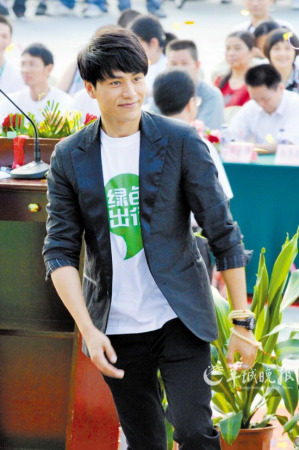 10月17日下午,大眾電影百花獎(jiǎng)“新科影帝”陳坤來到廣州,在白云會(huì)議中心參加“綠色出行”公益活動(dòng)啟動(dòng)儀式。
