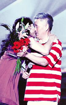 前日一場(chǎng)演出中,趙本山穿條紋T恤亮相,秀起二胡技藝,還拉馮小剛一起上臺(tái)。這時(shí)一個(gè)穿著粉嫩短裙的美眉沖上臺(tái)來為趙本山獻(xiàn)花,還湊上前去接吻,不過趙本山看上去相當(dāng)不愿意……轉(zhuǎn)過身來觀眾們才認(rèn)出“女粉絲”是扮女裝的小沈陽,引來一場(chǎng)哄笑。(東魚)