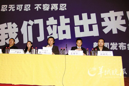 昨天下午,深圳“稻草文化”公司打著“忍無可忍,不容再忍———我們站出來”的橫幅召開新聞發(fā)布會,表示要“公開‘訂金門’事實真相”。