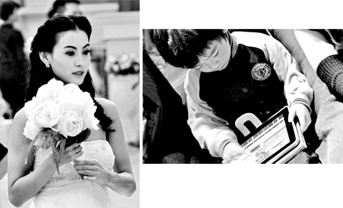 當(dāng)天拍攝的是《最強(qiáng)囍事》中的重頭戲:搶親。杜汶澤好不容易將張柏芝追到手,哪知就在婚禮即將舉行的一刻,對(duì)張柏芝情深意切的古天樂(lè)突然出現(xiàn)在現(xiàn)場(chǎng),不由分說(shuō)就要將張柏芝搶走。一見(jiàn)身披婚紗的張柏芝,就不由令人想起她和謝霆鋒的幸福婚姻生活。提起謝霆鋒,張柏芝立刻就笑了,甜蜜表示:“霆鋒來(lái)探班過(guò),但因?yàn)橛袘蛟谏,才呆?5分鐘就走了。”雖然只有15分鐘,但對(duì)于張柏芝來(lái)說(shuō),已經(jīng)很是滿足。張柏芝坦言,那么多年沒(méi)有拍戲,剛剛站到鏡頭前的一刻,確實(shí)有些不習(xí)慣和緊張,還好有老公在身邊支持自己:“他是很靦腆的人,在片場(chǎng)話雖然不多,已經(jīng)是很關(guān)心的舉動(dòng)了,我很開(kāi)心!