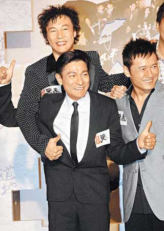 中新網(wǎng)10月18日電 劉德華(華仔)投資的新片《兄弟》前晚在香港首映,苗僑偉、黃日華等人到場(chǎng)力挺。眾人朗誦《詩(shī)經(jīng)》詩(shī)句“兄弟鬩于墻,外御其侮”,剛念完華仔身后廣告牌應(yīng)聲倒下,讓他十分尷尬。日前香港地道烏龍茶飲料被發(fā)現(xiàn)注入消毒水,身為代言人的他在現(xiàn)場(chǎng)豪飲烏龍茶,力撐支持他多年的廣告商。
