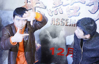 馮小剛導(dǎo)演的《集結(jié)號(hào)》將在一個(gè)月后于內(nèi)地公映。昨天下午,在上海杜莎夫人蠟像館,“集結(jié)號(hào)”主題蠟像館揭幕儀式隆重舉行。一周內(nèi)幾次三番參加宣傳活動(dòng),馮小剛的臉色比他的蠟像還糟糕,但為了自己的首部戰(zhàn)爭(zhēng)片,為了華誼兄弟副總王中磊喊出的“兩個(gè)億”的“心理票房”,馮小剛還是相當(dāng)配合地與主演張涵予、鄧超又一次站到聚光燈下。