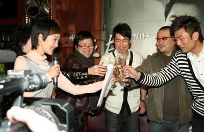 柏林電影節(jié)即將開幕,王小帥導(dǎo)演的《左右》入圍主競賽單元,昨天主演成泰燊的經(jīng)紀公司在北京后海某酒吧為成泰燊以及《左右》劇組舉辦了一場餞行會。