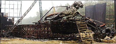 該片自2007年5月開(kāi)拍以來(lái),就風(fēng)波不斷,除了人員的問(wèn)題外,《赤壁》的場(chǎng)地、布景也頻出事端,先是在北影廠搭建的主要場(chǎng)景因租約期滿,要讓與《梅蘭芳》而被迫遷移重新搭建,繼而再傳出遙控飛機(jī)墜毀片場(chǎng)、大水沖塌場(chǎng)景導(dǎo)致沉船的消息。(記者蘇季 歐欽平)