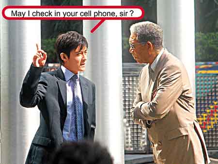 片中西裝筆挺的陳冠希,原來(lái)只扮演一名大廈接待員,在入口大堂出現(xiàn)的他,唯一的對(duì)白是對(duì)摩根-弗里曼說(shuō):“May I check in your cell phone,sir?(意譯為我可否收起你的電話?)”而能夠清楚看到他的鏡頭也僅得這三秒而已。