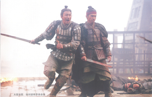 從記者的角度來看,戰(zhàn)爭場面的確比較血腥,殺戮鏡頭很多,而吳宇森風格的慢鏡頭和色彩運用則多少以“美感”中和了“暴力”。盡管是第一次拍古裝大片,但吳宇森充分消化了中國古代戰(zhàn)爭中的智慧:有點像當代團體操的八卦陣、破馬陣的狼牙棒、趙云的“空手套白狼”、張飛的獅吼、關(guān)羽的一夫當關(guān),再加上搖著羽扇的諸葛亮和表情鎮(zhèn)定的周瑜穿插其中,極富節(jié)奏的鏡頭調(diào)度讓戰(zhàn)爭場面血肉豐滿。
