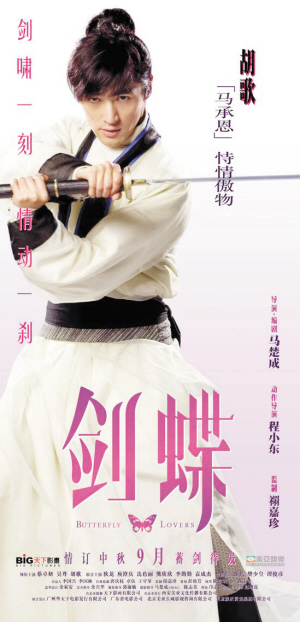 電影《劍蝶》海報(bào)昨日曝光,3位主人公一起亮相,吳尊飾“一劍情深的梁仲山”,蔡卓妍飾“一愛無悔的祝言之”,胡歌飾“恃情傲物的馬承恩”。而此片也推出了漫畫繪本,吳尊與阿Sa的造型像真度極高,連吳尊看過后也大贊畫功精美,還告訴阿Sa,漫畫造型比他真人更帥,他打算買幾十本送給朋友與文萊的家人。