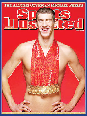 菲爾普斯身戴八塊金牌,登上美國體育雜志封面