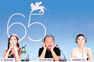 導(dǎo)演余力為(中)與兩個女主角在威尼斯現(xiàn)場。