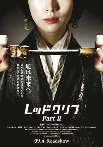 《赤壁》(下)的日本海報是小喬拔劍自殺。