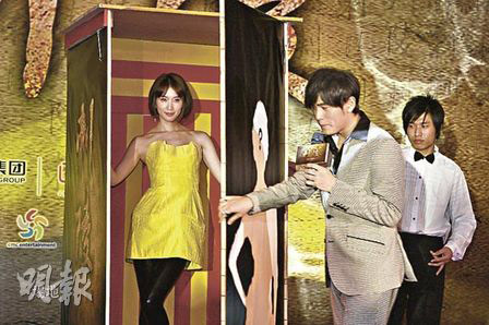 據(jù)香港《明報》報道,周杰倫在記者會上化身魔術(shù)師,變出女主角林志玲。有質(zhì)疑林志玲比周杰倫高,穿上平底鞋的林志玲讓大家來量度高度,原來周杰倫比林志玲高0.5公分,她笑說:“周杰倫是我拍電影以來最高的男主角!眱扇嘶ベu口乖,指對方是心目中最好條件的異性,林志玲形容周杰倫是才子,孝順之余更會變魔術(shù),所以很期待合作;而周杰倫亦表示很期待與這位幾乎是所有男人的夢中情人合作,但他唯一要求女主角不能比他高,“幸好我比林志玲高”。