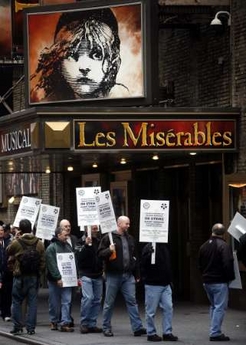百老匯舞臺人員工會指出,他們必須爭取合理待遇,因而這次罷工或持續(xù)數(shù)周。組織罷工的團體“國際劇院志愿聯(lián)盟”指,罷工導(dǎo)致每日1700萬美元損失,但他們表示并不打算妥協(xié)。