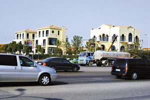 油罐車等許多大型車輛從李家豪宅外快速駛過,噪音很大。