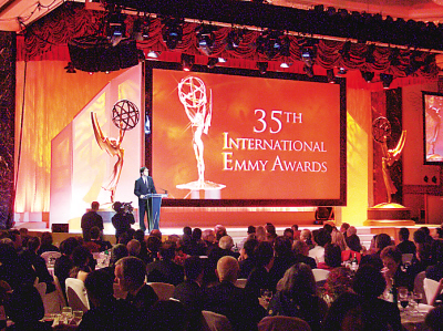 2007年11月19日,位于美國(guó)紐約曼哈頓第6大道、54街的希爾頓飯店,突然間成為眾多電視攝像機(jī)聚焦的地方。當(dāng)?shù)貢r(shí)間晚7時(shí),國(guó)際電視界的最高獎(jiǎng)項(xiàng)之一——第35屆國(guó)際艾美獎(jiǎng)?lì)C獎(jiǎng)典禮在這里隆重舉行。來(lái)自世界各地的電視明星、導(dǎo)演、制作人、發(fā)行商和政界名流、專家學(xué)者等共1000余人,以及數(shù)十家著名電視機(jī)構(gòu)歡聚一堂。