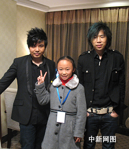 水木年華與采訪的小記者親切合影。作 者:馮昶