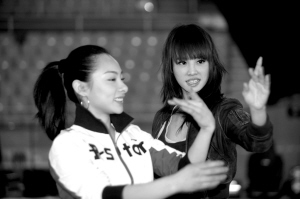 兩年前蔡依林在北京舉行專輯《舞娘》的記者會(huì),劉璇曾經(jīng)以嘉賓的身份現(xiàn)身助陣。如今兩人再次相見,劉璇驚嘆:“你怎么又瘦了呀?”采訪現(xiàn)場(chǎng),蔡依林即興秀了一段為歌曲《舞娘》編排的彩帶舞。劉璇看到蔡依林腳下大約10厘米的高跟鞋,走上前提醒說:“你就不要跳起來了,只要做手部動(dòng)作就可以。”劉璇退役前的項(xiàng)目是競技體操,蔡依林的彩帶舞屬于藝術(shù)體操,兩者從技術(shù)等方面來說還是有區(qū)別的。“但是我可以在動(dòng)作、腳步和姿勢(shì)上指導(dǎo)一下,比如一些細(xì)節(jié)。因?yàn)槲矣X得在整套動(dòng)作中,細(xì)節(jié)是很重要的!痹趧㈣v解時(shí),蔡依林一邊聽一邊點(diǎn)頭,非常認(rèn)真。她透露,除了彩帶舞還將在北京演唱會(huì)上表演“高空無重力雙環(huán)瑜伽”等體操動(dòng)作。