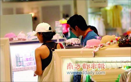 兩人在商場里悠閑漫步,先后去了三四家嬰兒用品柜臺,挑選些小衣服,小奶瓶等嬰兒用品。夫妻二人在選購過程中不時交流,挑選得十分仔細(xì)。雖然周圍的營業(yè)員都在交頭接耳議論,似乎已認(rèn)出了陸毅和鮑蕾,但夫妻倆并未在意,只顧挑自己的東西。(小魚)