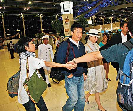 中新網(wǎng)7月18日電 梁朝偉和劉嘉玲下周一(21日)將在不丹舉行婚禮,前日(16日)他們帶著十箱行李飛赴不丹。一對準(zhǔn)新人前晚抵達(dá)曼谷時(shí)均滿面春風(fēng),并在機(jī)場免稅店狂買約30瓶香檳及80條香煙?磥矶说幕槎Y已準(zhǔn)備煙酒齊飛,向來喜歡小酌的新娘子必定不醉無歸。