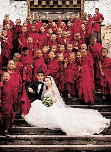 至于婚禮地點(diǎn),更讓大家想破頭,從一開始的香港峇里島、泰國小島通通猜錯(cuò),婚禮前一個(gè)星期才知道是在佛教小國不丹,讓很多媒體根本來不及申請(qǐng)簽證。