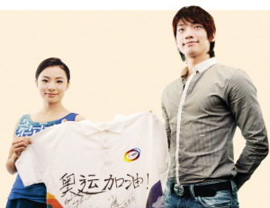 昨天,Rain和前奧運冠軍劉璇在北京三星奧運宣傳館參加為奧運加油的活動。雖然沒有答復(fù)是否會參加閉幕式演出,但Rain表示:“來到奧林匹克公園才能真正領(lǐng)略奧運帶給世界人民的激動,我希望能更多地融入奧運中,同時也衷心祝福世界各地的運動員在取得好成績的同時,也享受奧運帶來的激情和挑戰(zhàn)。”說到興起時,Rain還高舉右手,緊握拳頭笑著用中文說道:“中國加油!”之后,他與劉璇一起在T恤上寫下祝福奧運的話語。