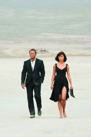 如果說離了那些稀奇古怪的裝置,邦德還是可以打出個(gè)黎明,那邦女郎的異化可能表明《量子危機(jī)》走得更遠(yuǎn)。人們習(xí)慣把邦女郎看成是邦德業(yè)余生活的調(diào)劑品,而007電影也一直是女權(quán)保護(hù)組織的打擊對象。以往兩人看似較量實(shí)則曖昧的對話調(diào)情戲,在第22集里幾乎看不到,新邦女郎奧爾加·庫里連科(飾演卡米拉)具備《明日帝國》中楊紫瓊的身手,雖然有場香艷的裸背療傷戲,但她與007之間實(shí)際上是勢均力敵的合作關(guān)系。克雷格說,“我覺得邦德一直是個(gè)討厭女人的人,不過差別就在于我們一直在找好的女星來演強(qiáng)有力的邦女郎角色,她需要在邦德干錯(cuò)事時(shí)干凈利落地叫他‘死開點(diǎn)’!倍鴰炖镞B科認(rèn)為《量子危機(jī)》中卡米拉“有自己的目標(biāo),有沒有邦德陪伴都會如此,這使她變得非常不一樣”。
