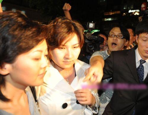 吳伯雄5日晚在晶華酒店宴請陳云林,“嗆聲”民眾包圍飯店數(shù)度沖撞,還圍堵央視主播柴璐(左一)等媒體人員。