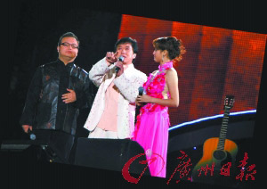 前晚,演唱會以舞樂天使的動感樂器合奏開場,隨后,成龍的8名徒弟獻上醉拳表演以及《小鎮(zhèn)姑娘》等節(jié)目。在數(shù)萬觀眾的期盼下,身穿白色馬褂的成龍腳踩雙輪電動車出現(xiàn)在舞臺前方,頓時引起全場的騷動。一首《we are ready》點燃了全場觀眾的熱情,但可能是太倉促的原因,這首開場歌曲中,成龍有一兩處沒有跟上音樂,好在他很快就找到了狀態(tài),不管是愛意濃濃的《無盡的愛》,還是激情萬丈的《站起來》,抑或是深情款款的《生死不離》,都詮釋得十分精彩,聲音洪亮且質(zhì)感十足,堪比專業(yè)歌手。
