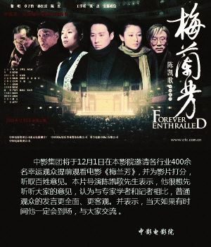 《梅蘭芳》上映首周末就在全國取得了4218萬元的票房。中影集團新聞發(fā)言人翁立稱,這是一個讓“各方都滿意”的成績,他透露影片1.2億的票房是發(fā)行方的底線。