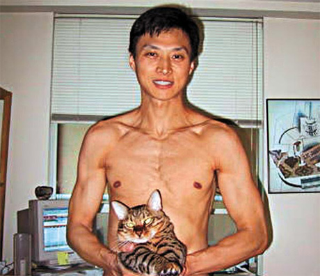 倪震與周慧敏愛得瘋狂,他于04年曾全裸抱著二人愛貓遮掩重要部位,由女友操刀拍照。