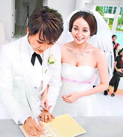 王仁甫(左)、季芹昨在關(guān)島教堂簽下結(jié)婚證書(shū),正式成為夫妻。