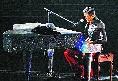此外,他還苦練2個月鋼琴,展現(xiàn)動靜皆宜的誠意,他說:“我每天半夜洗完澡后練琴,是拚命記下來的!钡巴沓鯊棥度砜凇窌r,因太緊張頻出錯,他說:“后面彈不好,干脆重來好了。”沒想到他重彈了5遍,最后說:“彈鋼琴好難喔!你們以為我是周杰倫!”流露可愛一面。但他的國語隨緊張變得更不輪轉(zhuǎn),他苦笑:“我好緊張!國語一直打‘折’!碑攬霰桓杳约m正是打“結”,他說:“我又回到18年前,我錯了!