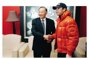 發(fā)行了京劇唱片《太真外傳》、《貴妃醉酒》的梅葆玖先生,昨天也如同“歌手發(fā)片”一般在滬上宣傳簽售。在現(xiàn)場遇到了同時正在為《非誠勿擾》做宣傳的馮小剛導(dǎo)演。兩人初次見面,相談甚歡。
