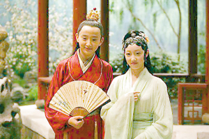有一次拍到賈寶玉吃丫環(huán)嘴上的胭脂,“小寶玉”突然發(fā)脾氣,死都不肯合作。導(dǎo)演李少紅問他為什么,他哭喪著臉說:“這丫環(huán)長得太丑了,我可不想把自己的初吻給她!”說著,他就跑出去,號(hào)稱“要趕緊先把自己的初吻獻(xiàn)出去”。當(dāng)然他只是說說而已,當(dāng)時(shí)大家慫恿他去親“林妹妹”或“寶姐姐”,他聳聳肩:“導(dǎo)演知道了,還不打斷我的腿!”