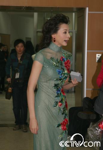 前幾次彩排,主持人一套衣服“一穿到底”,為了給除夕那天直播做準(zhǔn)備,今天以兩身衣服出鏡。董卿一開(kāi)場(chǎng)以一套大紅色的露肩禮服出場(chǎng),戴著一對(duì)兒紅色的長(zhǎng)型耳環(huán),半場(chǎng)過(guò)后換成一條橄欖綠色的旗袍式長(zhǎng)裙。兩身衣服都有中式的韻味在里面,喜慶之余顯得端莊親切。主持人朱軍準(zhǔn)備了一身黑色的西裝和一身金色的禮服。周濤由一身紅色的拖裙換成了一身藍(lán)色的禮服。據(jù)了解,在正式直播那天,主持人每人會(huì)換三身衣服,這次只是做個(gè)演習(xí)。