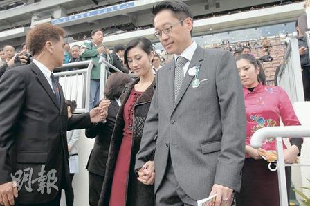 昨日是大年初七俗稱(chēng)“人日”的喜慶日子,許家名下有3匹愛(ài)駒出戰(zhàn)沙田馬場(chǎng),昨午李嘉欣與丈夫許晉亨十指緊扣步入馬場(chǎng)。一向身形纖瘦的嘉欣身穿紅色背心連身裙,腳踏兩吋高跟鞋,外表明顯比婚前發(fā)福,腹部的小肚腩亦若隱若現(xiàn),加上全身鉆飾行頭,完全是一副幸福少奶奶模樣。