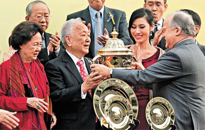 此外,身為亨亨前岳父的賭王何鴻燊,昨日巧合地現(xiàn)身馬場(chǎng),與嘉欣撞到。問賭王是否覺得嘉欣肚凸似有喜?他風(fēng)趣地說(shuō):“不知道是不是(有孕)嘍!我不會(huì)望女仔的肚子!