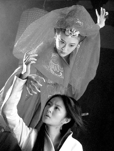 安以軒扮演的趙敏和劉競(jìng)扮演的周芷若上演了一場(chǎng)“搶夫大戰(zhàn)”。周芷若一瞬間從如花似玉的新娘變成目露兇光的女魔頭,打傷了趙敏。飾演張無(wú)忌的鄧超說(shuō):“隨著表演的深入,我對(duì)張無(wú)忌這個(gè)人物的體會(huì)越來(lái)越深。其實(shí)他的內(nèi)心是最純善的。為救義父放棄結(jié)婚,他內(nèi)心義無(wú)反顧,這其實(shí)與搶親的人是否是趙敏無(wú)關(guān)!庇浾 趙楠楠