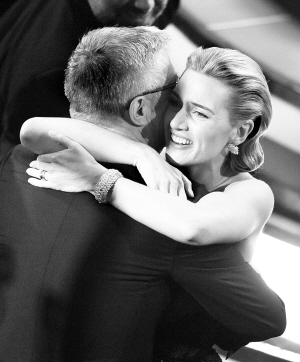 在紅毯上,凱特一襲灰藍(lán)色的曳地長裙,顯得從容雅致。但面對記者的提問,她卻坦言自己非常緊張:“我的父母也來為我助威了,可我還是非常緊張。其實(shí)我的腿在裙子里一直顫抖,只是裙子太長你看不到而已!眲P特開玩笑地說。有記者問她是否準(zhǔn)備了獲獎感言,凱特表示想過:“我還問了我的小孩,如果媽媽獲獎該說些什么,女兒的回答太不靠譜了,兒子則讓我感謝所有幫助過我的人。”