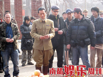 高群書的電影處女作《東京審判》曾獲得了廣泛的好評,而在此之前他曾拍攝了大量的刑偵劇,其中最成功最有名的就是孫紅雷主演的《征服》。記者從劇組的拍攝通告上發(fā)現(xiàn)正月十六這一天拍攝的是王志文審訊女刺客的戲,而扮演女刺客的是《征服》的女主演劉威葳,去年劉威葳曾主演了王小帥的影片《左右》。兩年多前《征服》火爆熒屏的時(shí)候,就有圈內(nèi)人士告訴記者,劉威葳就是導(dǎo)演高群書的女友,兩人已相戀多年,早在高群書的那部主要由非職業(yè)人員出演的系列劇《命案十三宗》中劉威葳就出演過其中的一集。記者在片場看到劉威葳梳著三十年代流行的女性的“雞窩”發(fā)型,穿著一件破爛的染著“血跡”的裙子,據(jù)一位知情人士向記者透露,劉威葳扮演的女刺客雖然戲份不多,但很重要,影片的一開場就是她刺殺日本要員的重頭戲,因?yàn)樗?fù)傷被俘,才意外使日軍懷疑內(nèi)部有間諜,從而展開調(diào)查。