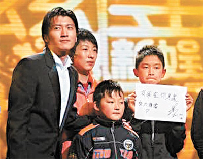 霆鋒多年來一直資助50名內(nèi)地失學兒童,前晚大會安排頒獎給霆鋒的5名兒童,皆來自四川地震災區(qū)都江堰,且全是由霆鋒資助上學。近一年來備受家事困擾的霆鋒,首次見到自己捐助的小孩,頓時百感交集,他緊緊地抱住這些小朋友,然后眼濕濕哽咽說:“每當我拍戲受傷或者心情低落時,我就會想自己不能倒下,可能有50個家庭靠我給他們一頓飯吃。因為認識了他們,我才知道自己有多幸運,同樣是黃種人,為什么謝霆鋒可以追逐自己的夢想,他們卻沒有這個機會!弊詈笏膭钚∨笥颜f:“叔叔不怕痛和累,你們也不能放棄!